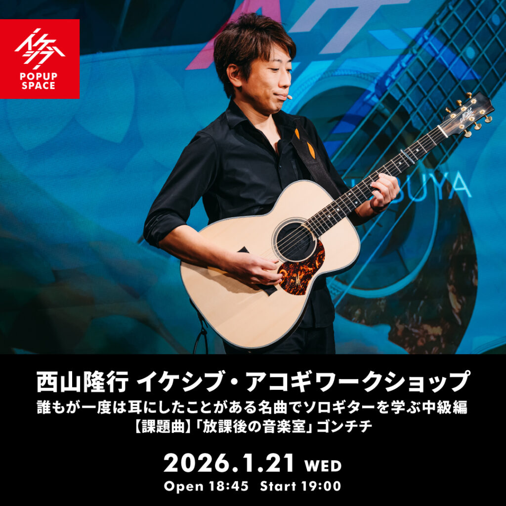 西山隆行 イケシブ・アコギワークショップ「誰もが一度は耳にしたことがある名曲でソロギターを学ぶ中級編」