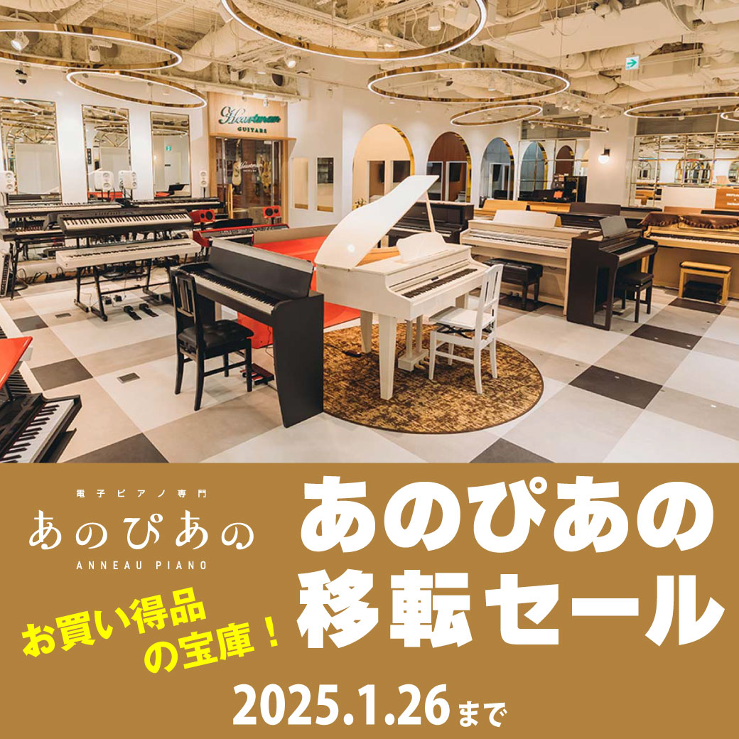 電子ピアノ専門店「あのぴあの」は、2025年1月26日(日)をもって現店舗での営業を終了し、同年2月3日(月・祝)より新店舗にて営業することとなりました。