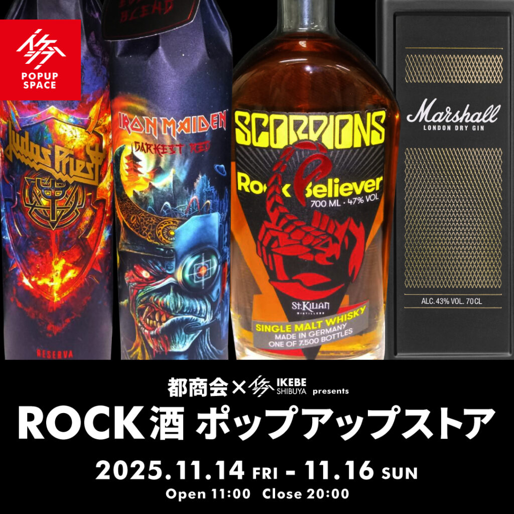 昭和二十二年創業、洋酒の輸入卸や国内外の食品卸を行う株式会社都商会による、ロック・アーティストが監修・プロデュースした公式酒「ロック酒」のポップアップストア第4弾が開催決定!