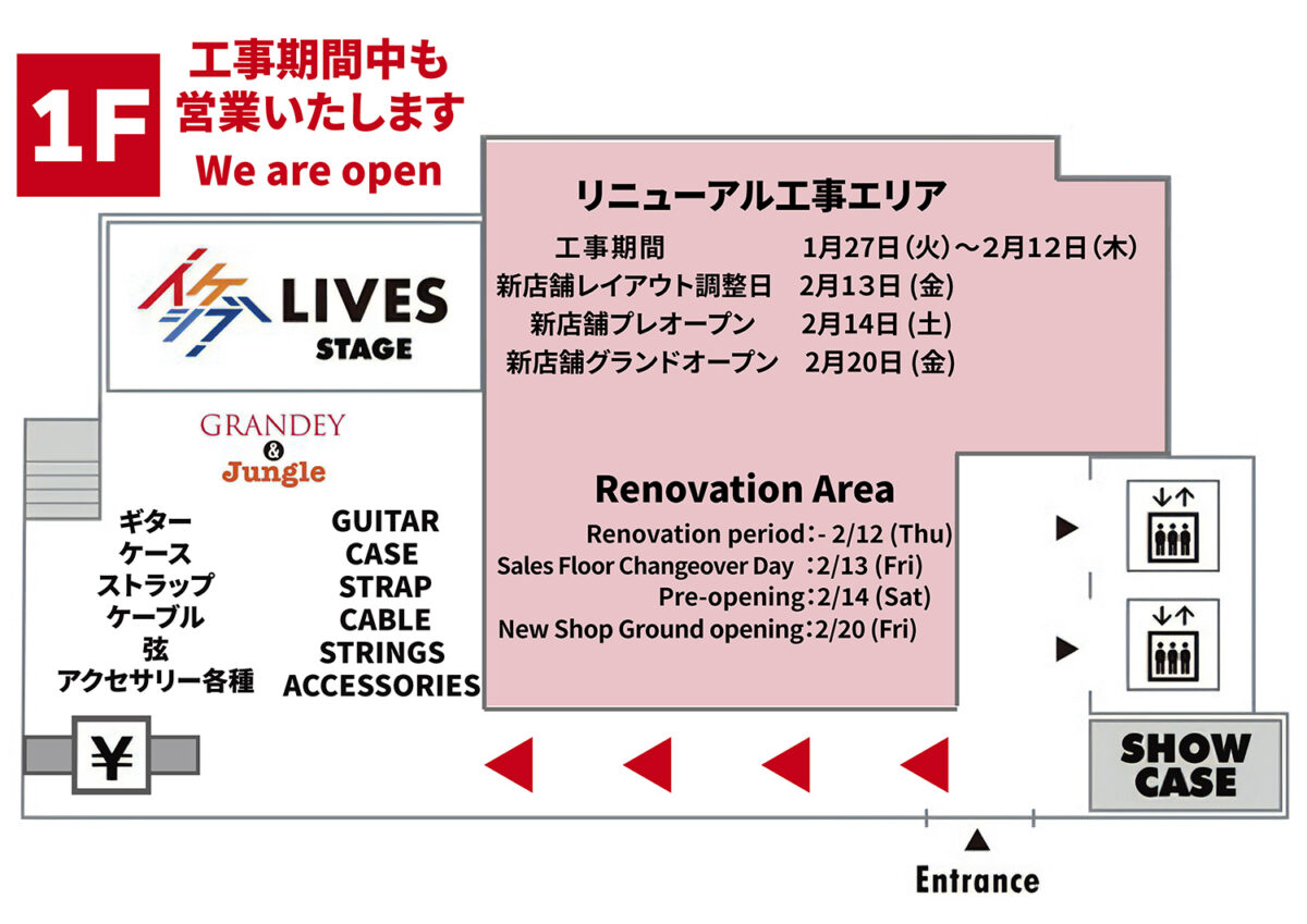 2026年1月27日(火)~2月12日(木)・・・フロアの一部工事実施いたします。