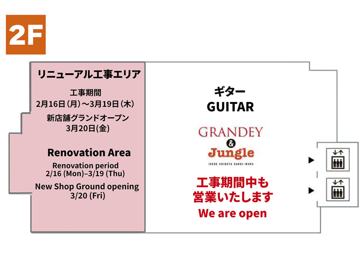 工事期間中も2階グランディ&ジャングルは営業いたします。